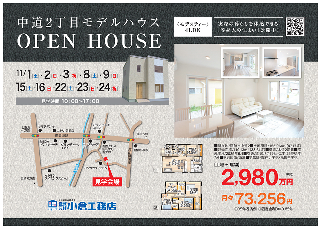 株式会社 曲小 小倉工務店 (カブシキガイシャ カネコ オグラコウムテン) 〒040-0072 北海道函館市亀田町17-2 TEL:0138-41-3844 | FAX:0138-45-8850 特定建設業、土木、建築 国土交通大臣許可(特・24)第24864号 一級建築士事務所 北海道知事登録(渡)第654号 宅地建物取引業 国土交通大臣(3)第8578号